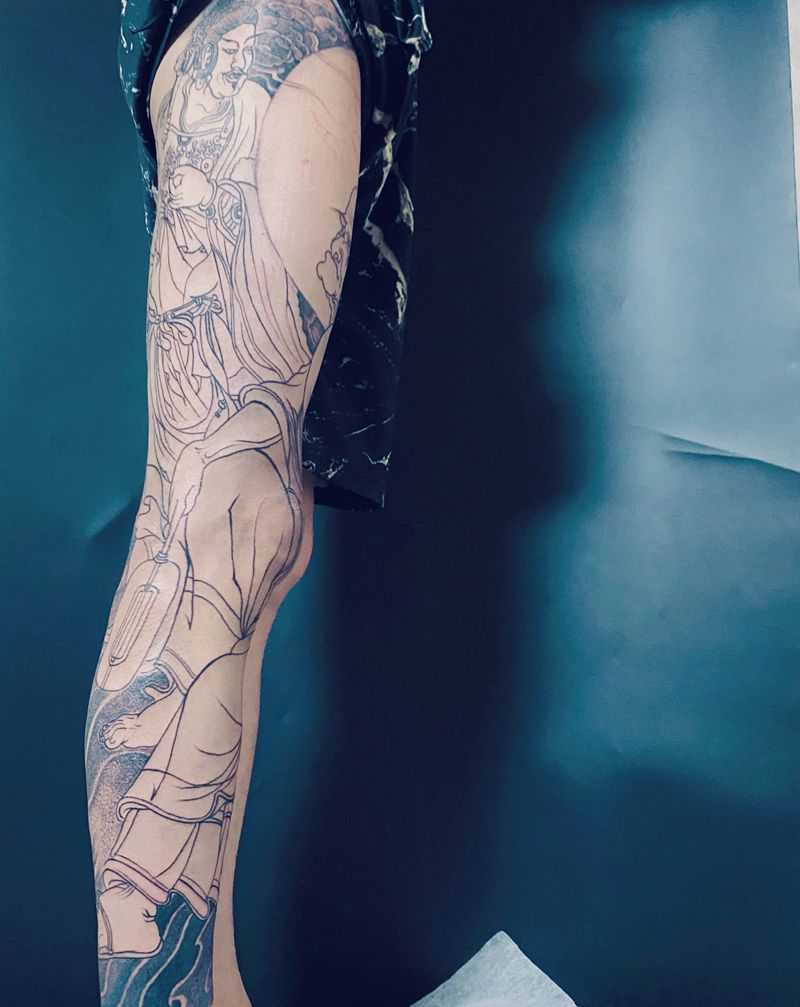 • T网红王老大花腿龙纹身图片_腿部新传统纹身图案