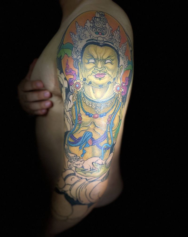 当前位置: 首页 >宁夏银川市纹身店-银川市金凤区佛陀刺青店纹身图案>黄财神纹身图片_手臂新传统纹身图案