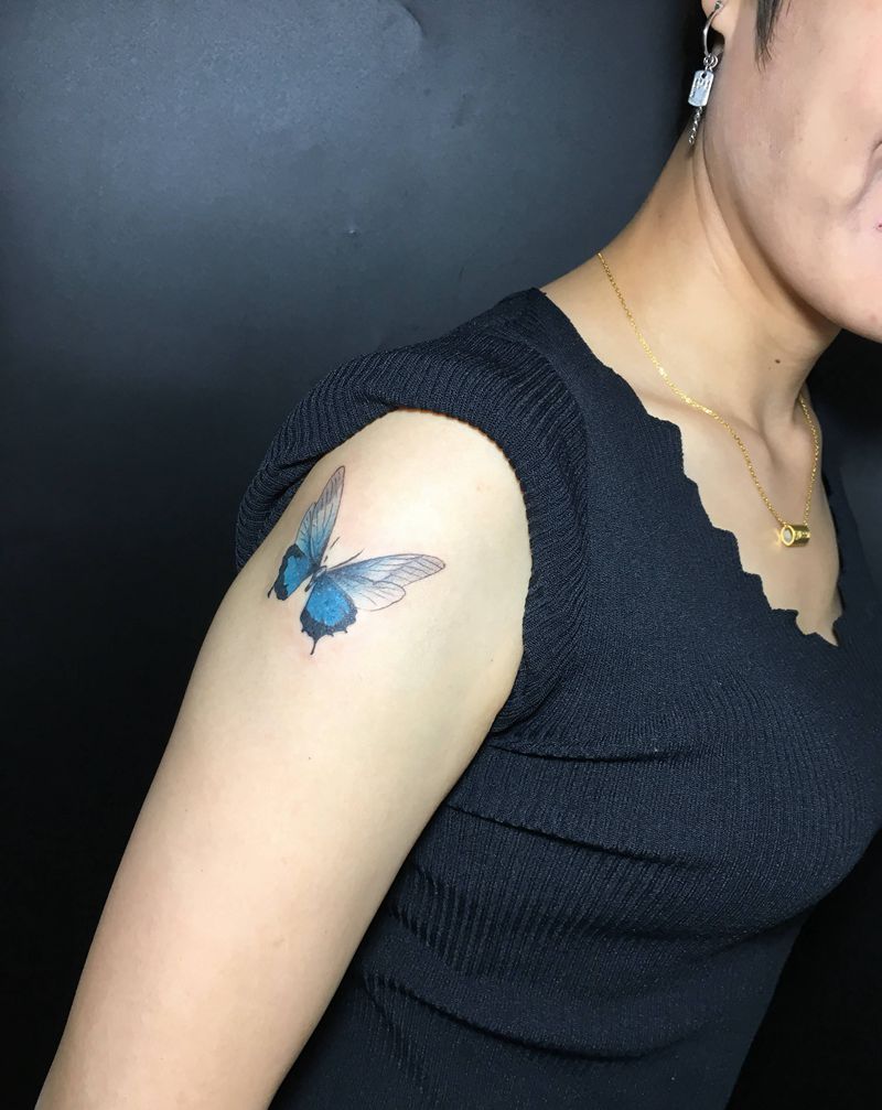 蝶纹身图片_肩部纹身图案