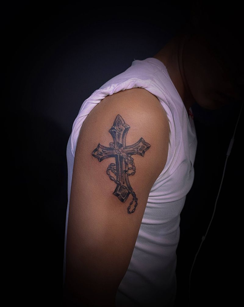当前位置: 首页 >宁夏银川市纹身店-银川市金凤区佛陀刺青店纹身图案>十字架纹身图片_手臂纹身图案