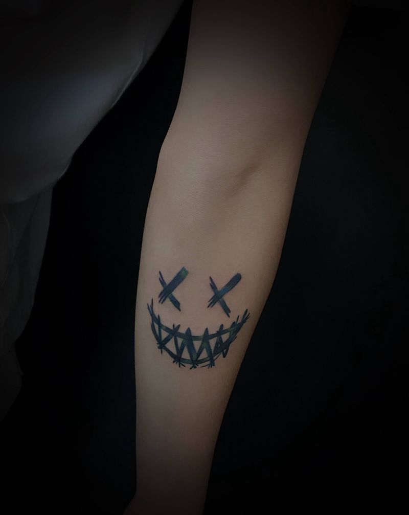 当前位置: 首页 >宁夏银川市纹身店-银川市金凤区佛陀刺青店纹身图案>笑脸纹身图片_手臂纹身图案