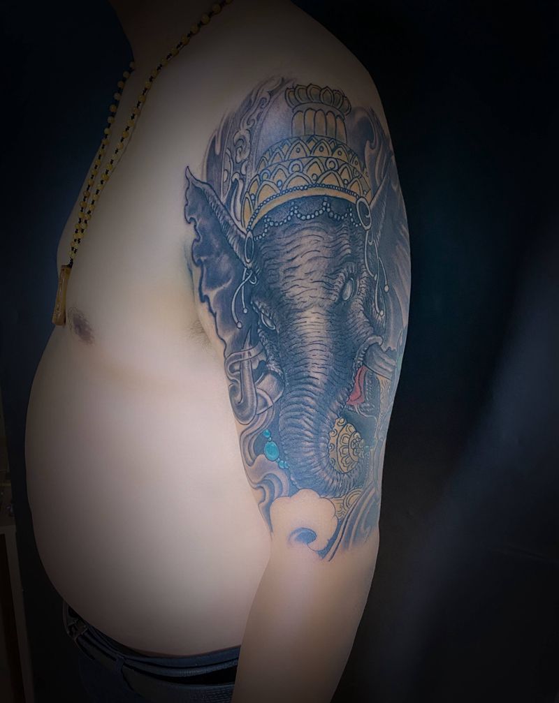 当前位置: 首页 >宁夏银川市纹身店-银川市金凤区佛陀刺青店纹身图案>象神纹身图片_手臂新传统纹身图案