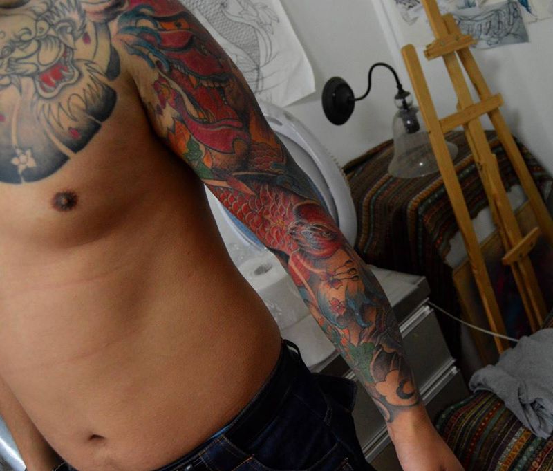 • T网红王老大花腿龙纹身图片_腿部新传统纹身图案
