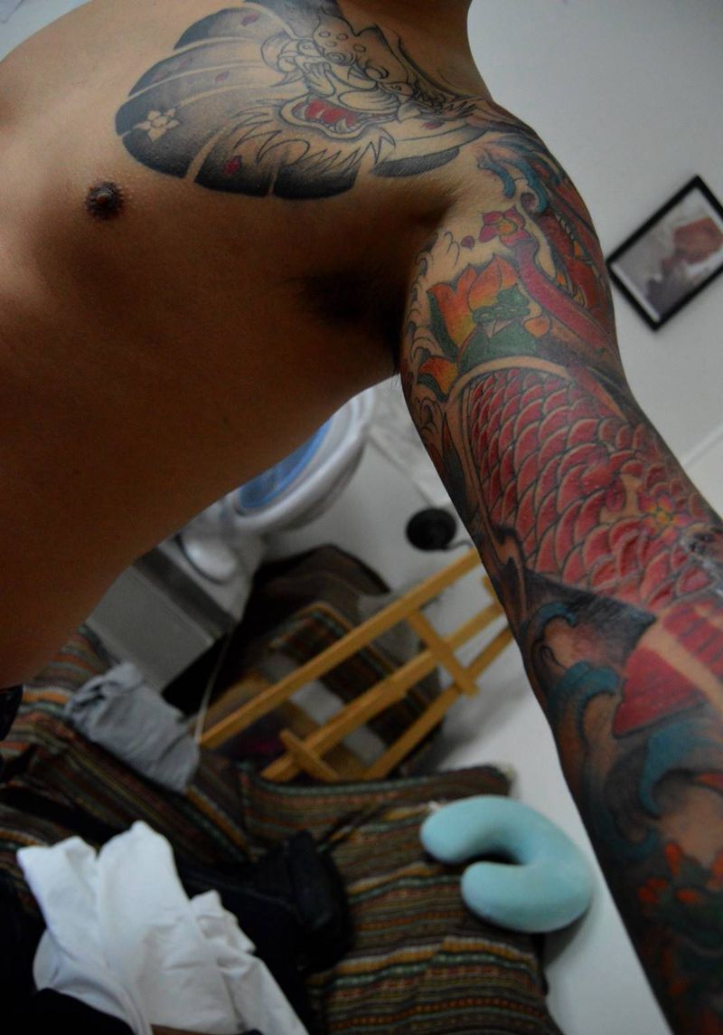 • T网红王老大花腿龙纹身图片_腿部新传统纹身图案