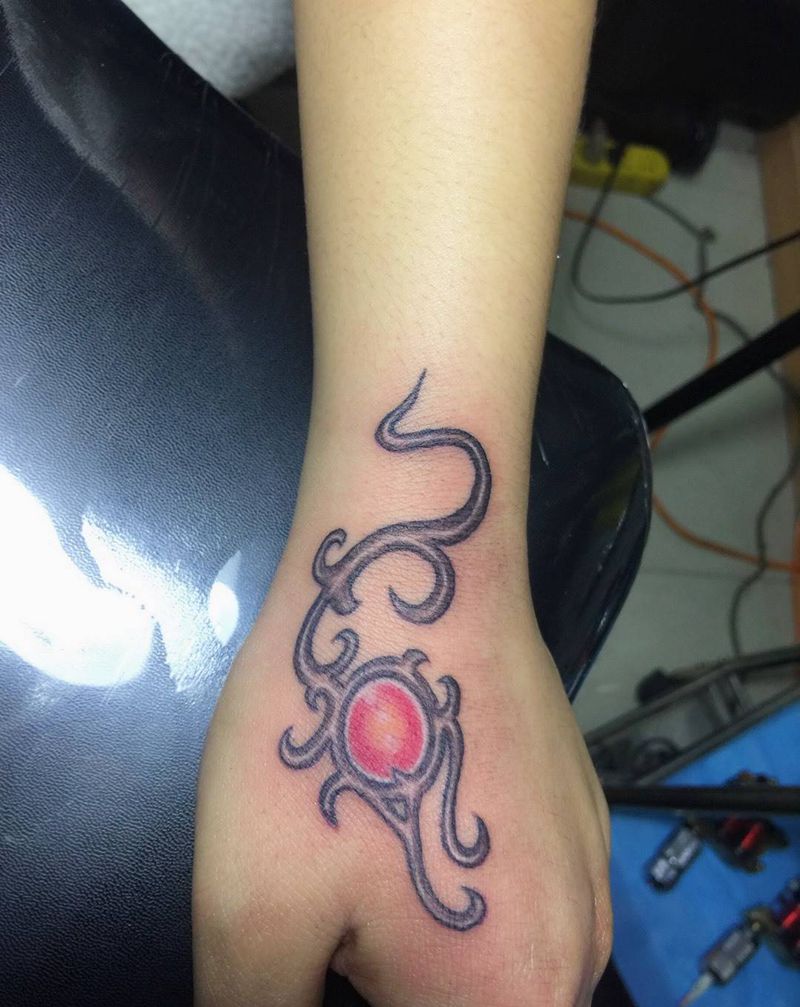 • 手背潮流时尚的玫瑰花眼睛纹身图案