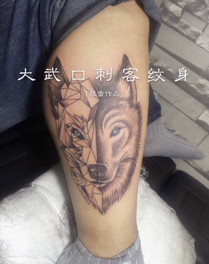 • T网红王老大花腿龙纹身图片_腿部新传统纹身图案