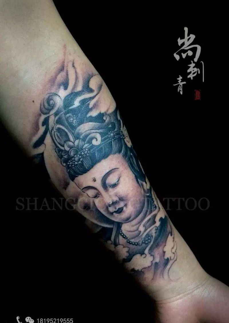 菩萨纹身图片_成品手臂传统国画宗教鬼神人物纹身图案
