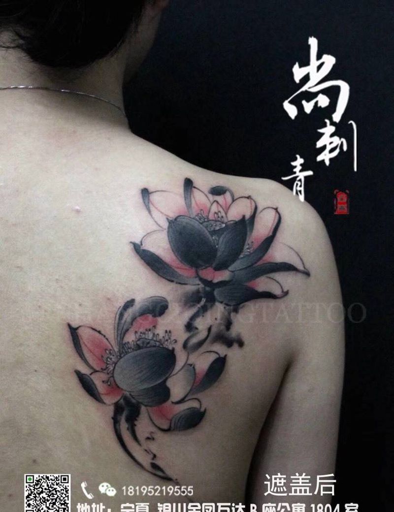 当前位置: 首页 >宁夏银川市纹身店-硬客(INK)tattoo studio纹身图案>遮盖作品纹身图片_成品肩部传统清新植物纹身图案