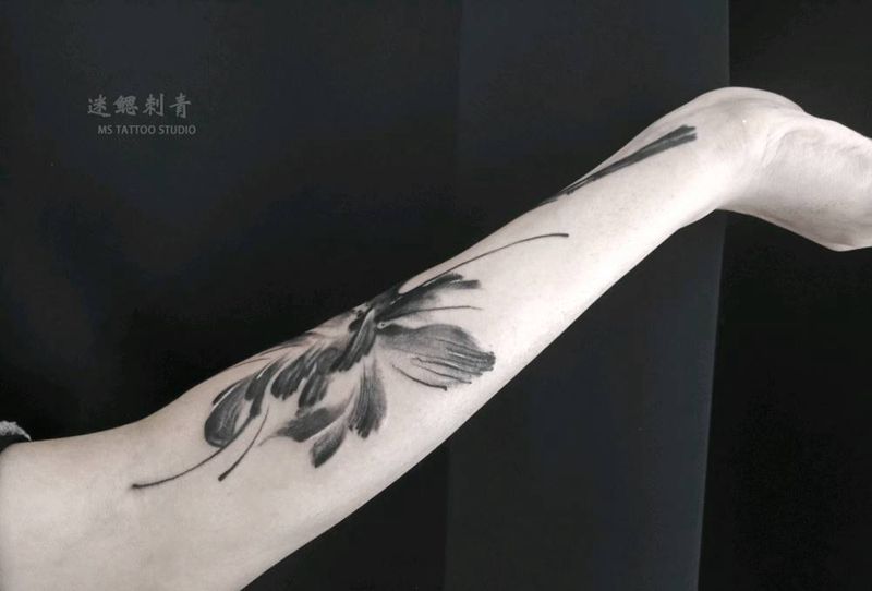 水墨写意莲花纹身图片_手臂水墨纹身图案