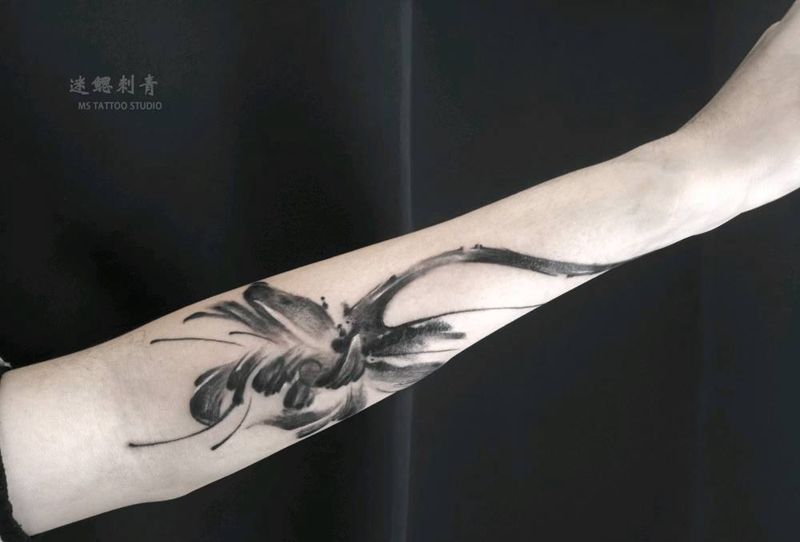 水墨写意莲花纹身图片_手臂水墨纹身图案