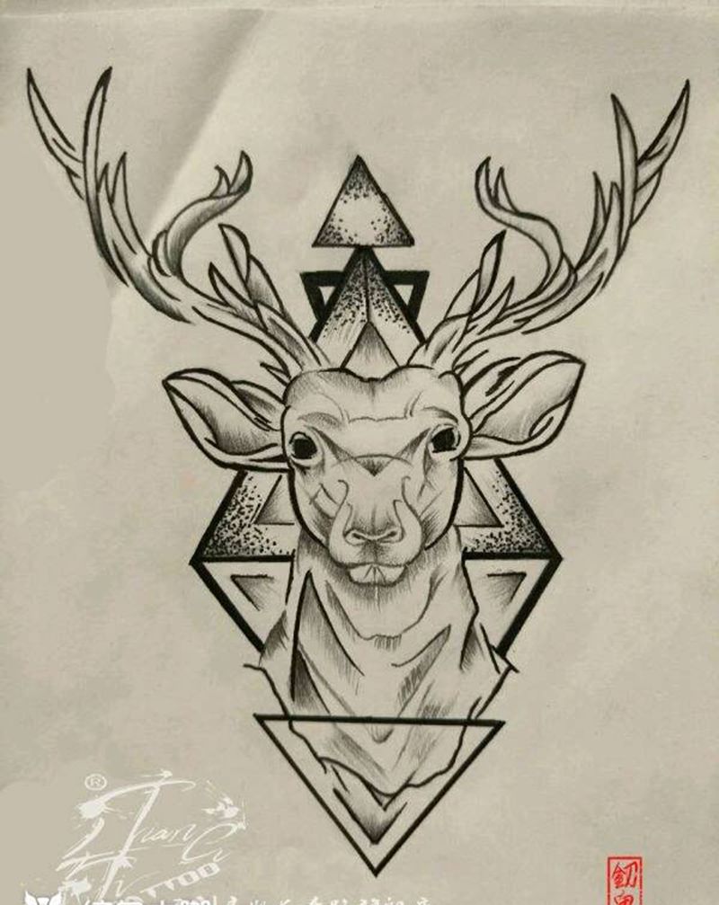 小鹿小鹿纹身图片_腿部动物成品手稿纹身图案