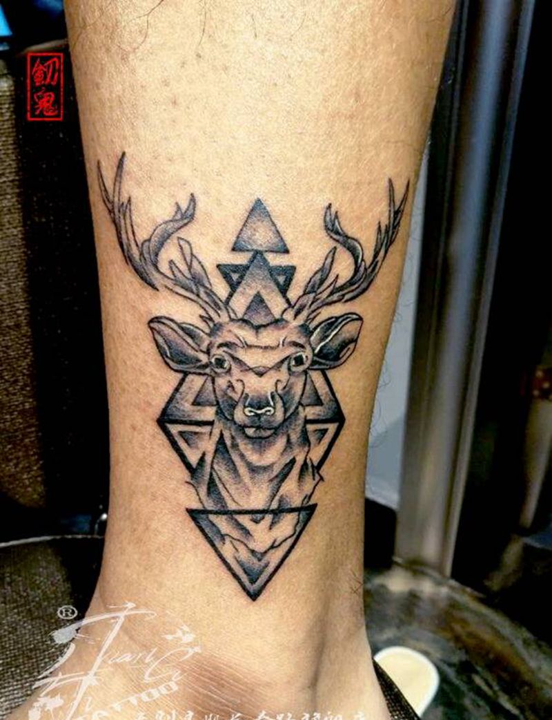 小鹿小鹿纹身图片_腿部动物成品手稿纹身图案
