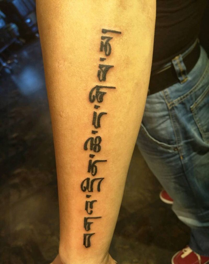 当前位置: 首页 >新疆乌鲁木齐市纹身店-魔彫刺青纹身图案>梵文纹身图片_手臂字符宗教成品纹身图案