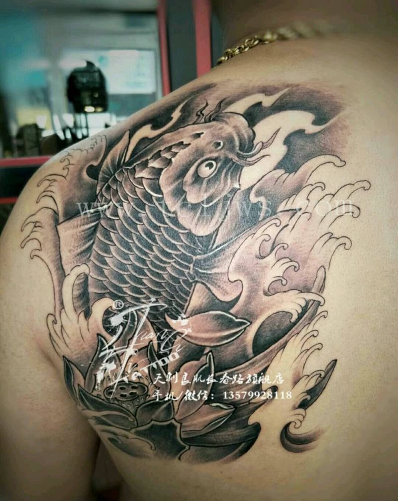 当前位置: 首页 >新疆乌鲁木齐市纹身店-魔彫刺青纹身图案>肩胛鱼纹身图片_背部传统成品纹身图案