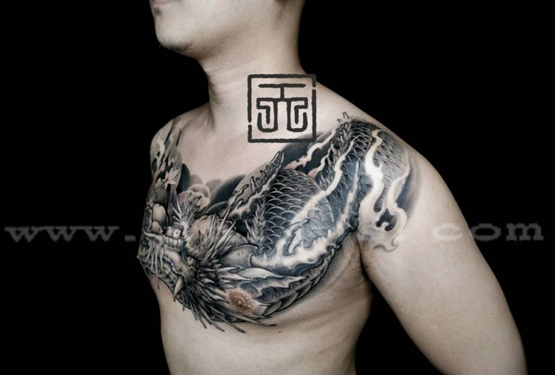当前位置: 首页 >新疆乌鲁木齐市纹身店-新疆乌鲁木齐天刺良肌纹身纹身图案>【飞龙在天】-花胸龙纹身纹身图片_胸部新传统纹身图案
