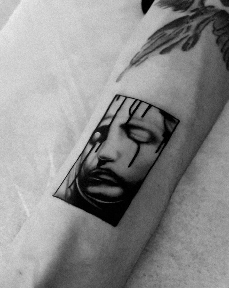 当前位置: 首页 >新疆乌鲁木齐市纹身店-鲲刺青纹身工作室纹身图案>Blessed virgin纹身图片_手臂欧美写实水墨纹身图案