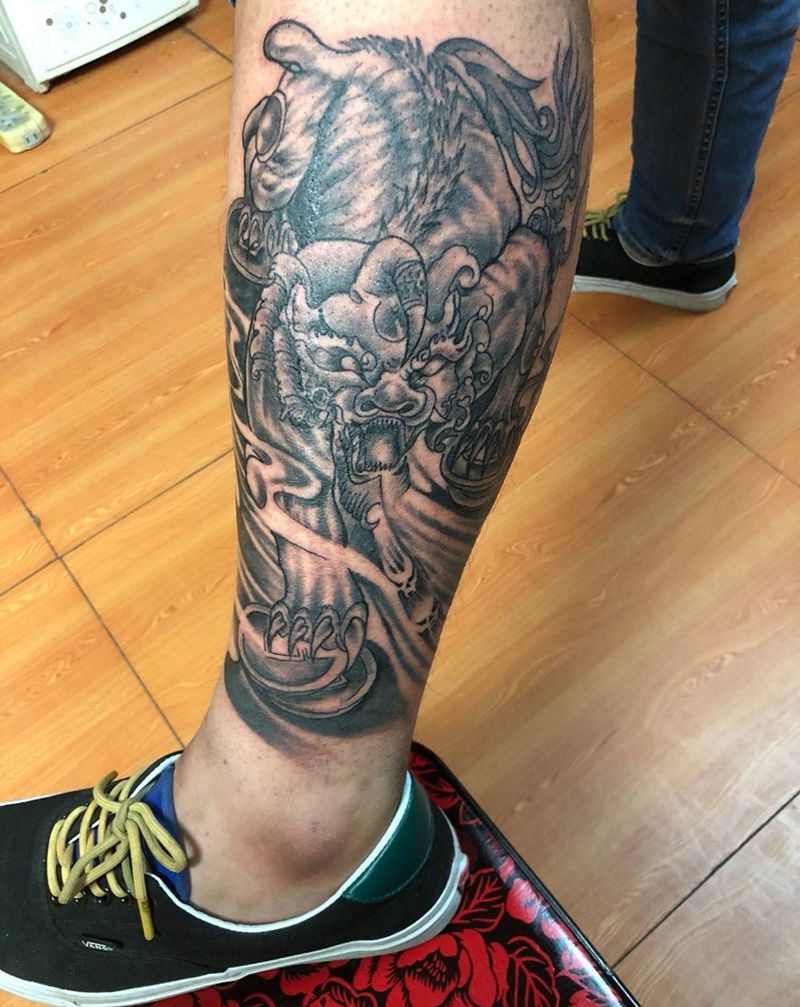 • T网红王老大花腿龙纹身图片_腿部新传统纹身图案