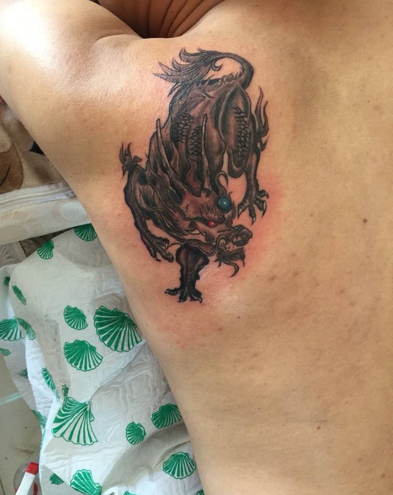 • T网红王老大花腿龙纹身图片_腿部新传统纹身图案