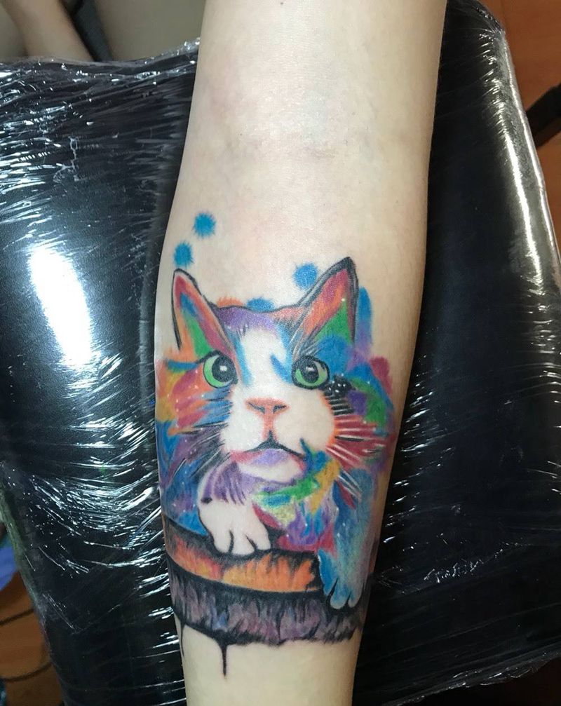 当前位置: 首页 >新疆乌鲁木齐市纹身店-肆義刺青纹身图案>水彩风格猫纹身图片