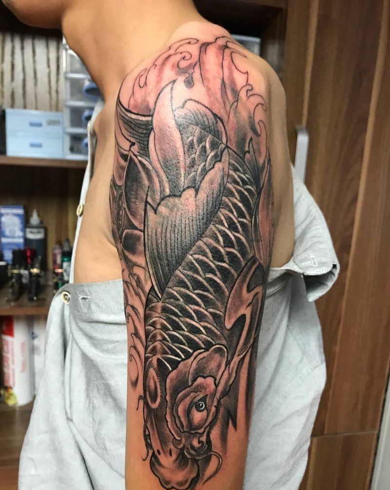 当前位置: 首页 >新疆乌鲁木齐市纹身店-肆義刺青纹身图案>遮盖鲤鱼纹身图片