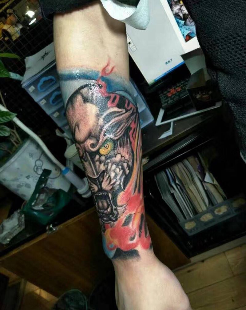 当前位置: 首页 >新疆乌鲁木齐市纹身店-肆義刺青纹身图案>唐狮纹身图片