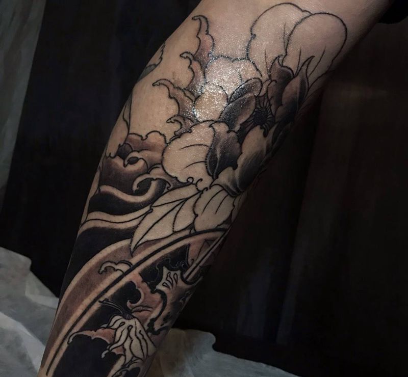 • T网红王老大花腿龙纹身图片_腿部新传统纹身图案