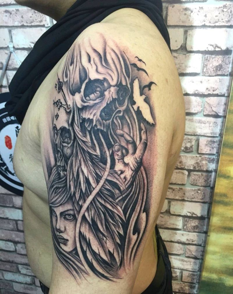 • 纹身吧推荐的披肩图腾半胛纹身图案作品展示