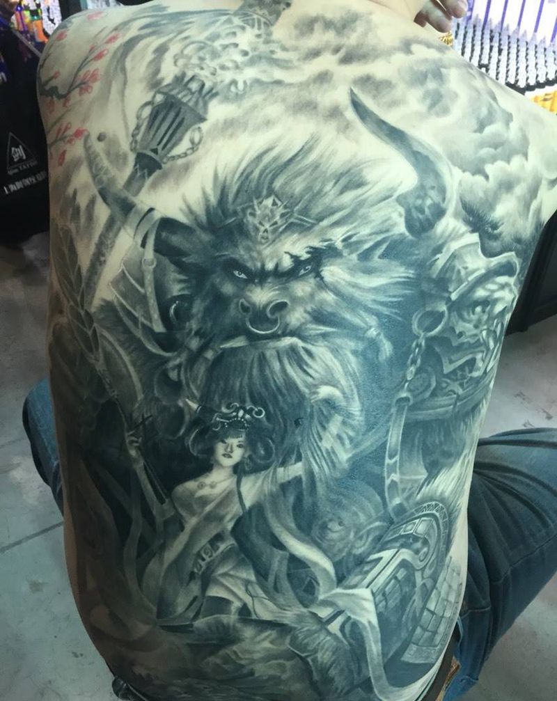 • 黑灰满背纹身图案