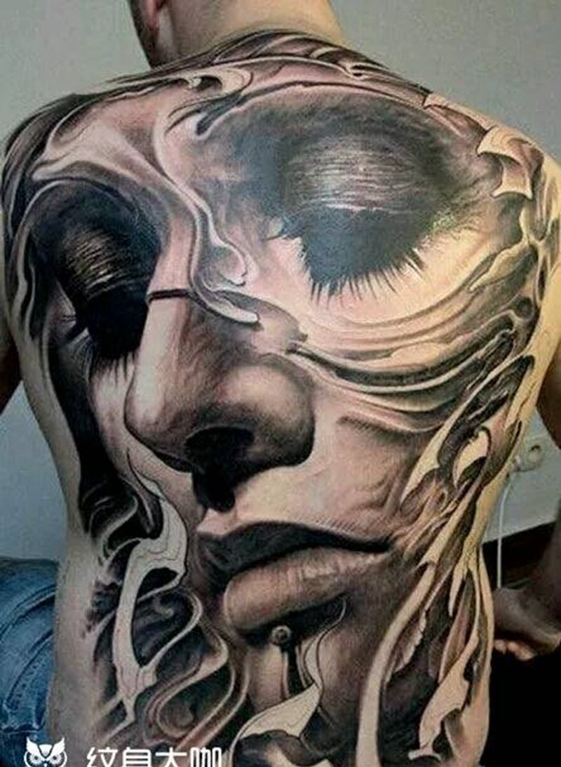 黑灰满背纹身图案