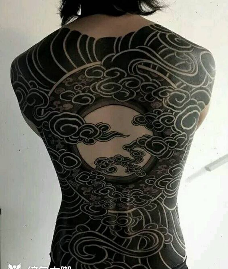 黑灰满背纹身图案