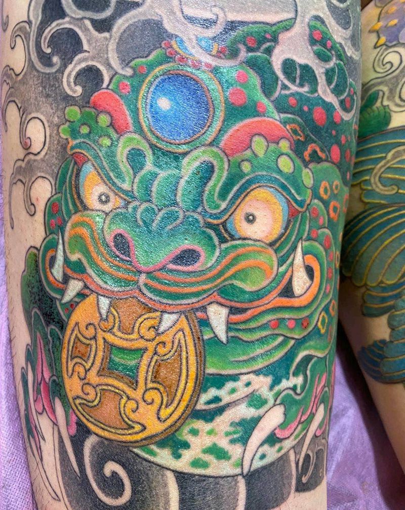 • T网红王老大花腿龙纹身图片_腿部新传统纹身图案