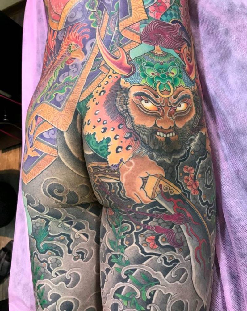 • T网红王老大花腿龙纹身图片_腿部新传统纹身图案