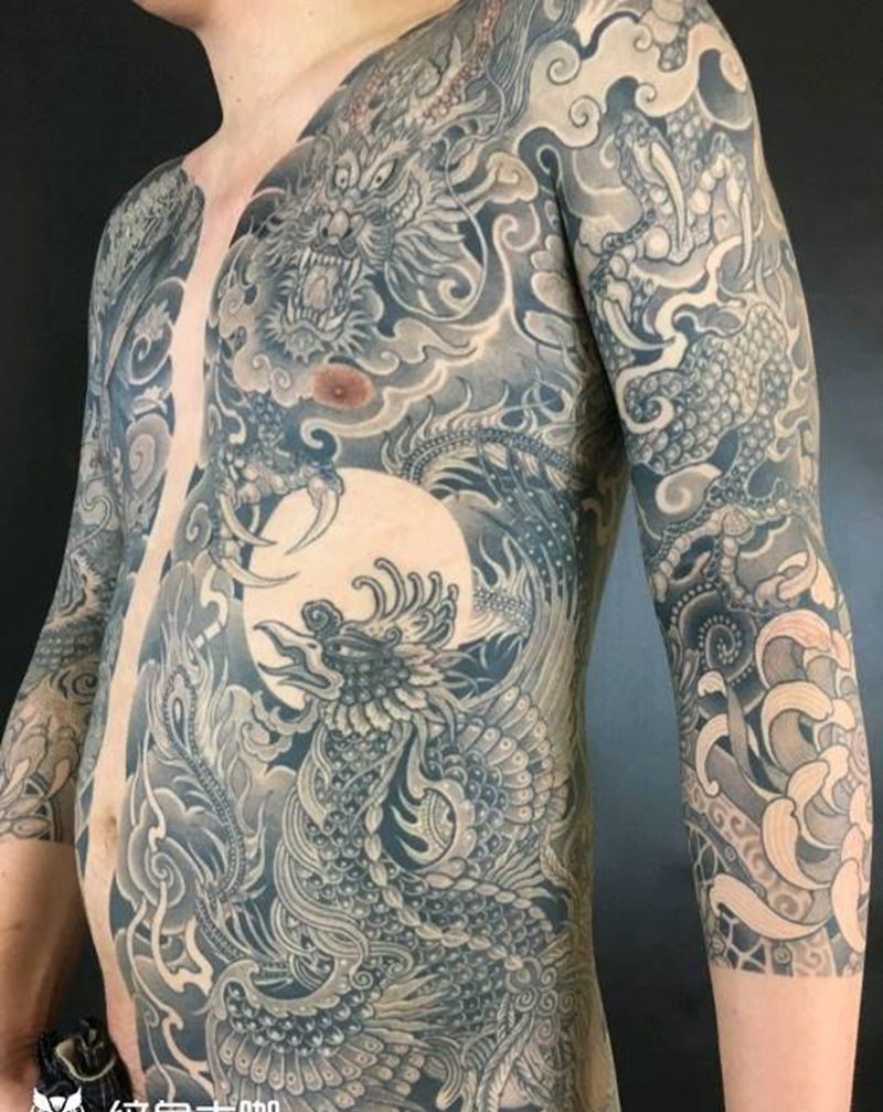 • 黑灰满背纹身图案