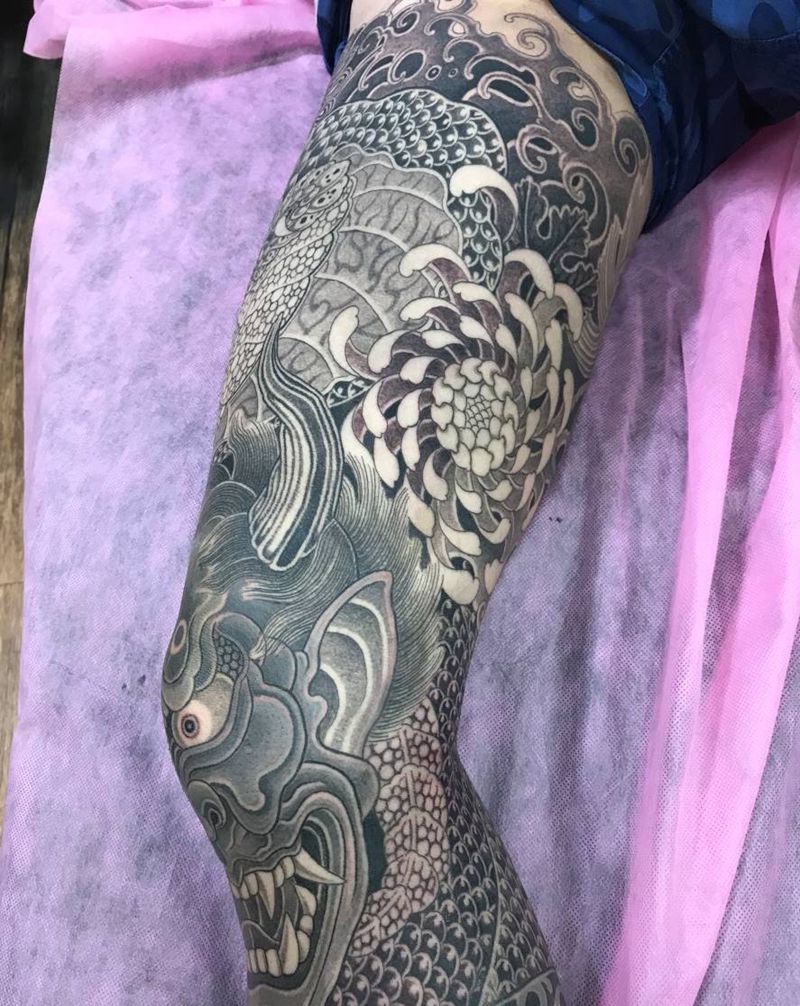 黑灰满背纹身图案