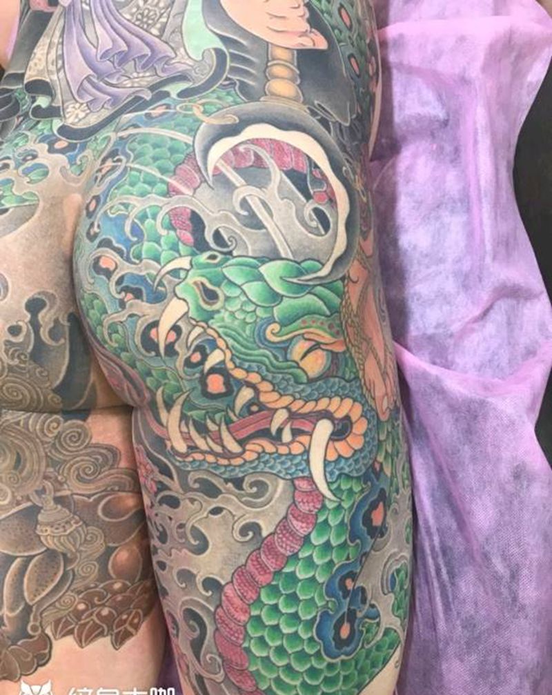 • T云龙九郎纹身图片_背部老传统云龙九郎纹身图案
