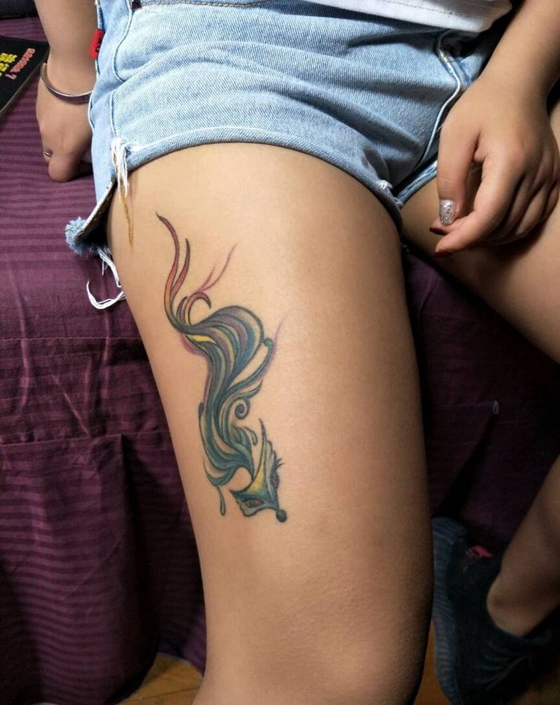 • T网红王老大花腿龙纹身图片_腿部新传统纹身图案