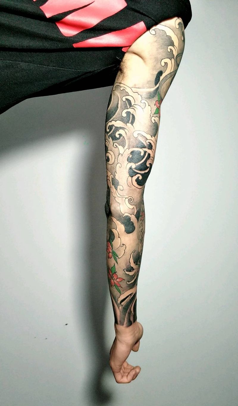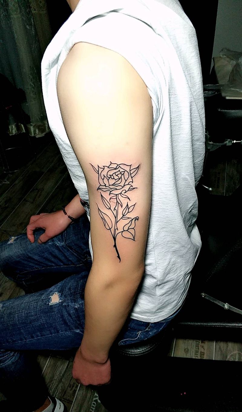 花臂 线条纹身图片_手臂新传统纹身图案