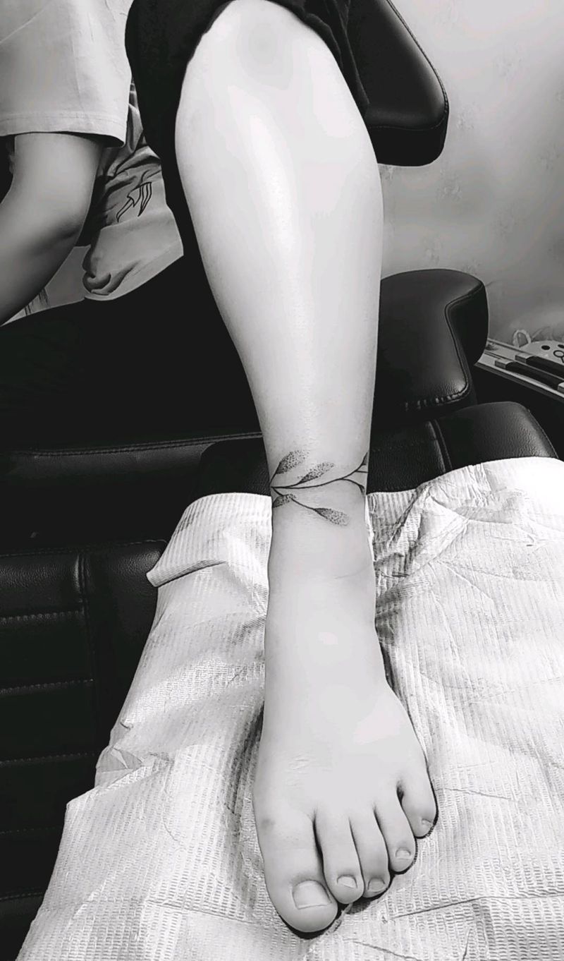 脚背 花藤纹身图片_脚部几何点刺纹身图案
