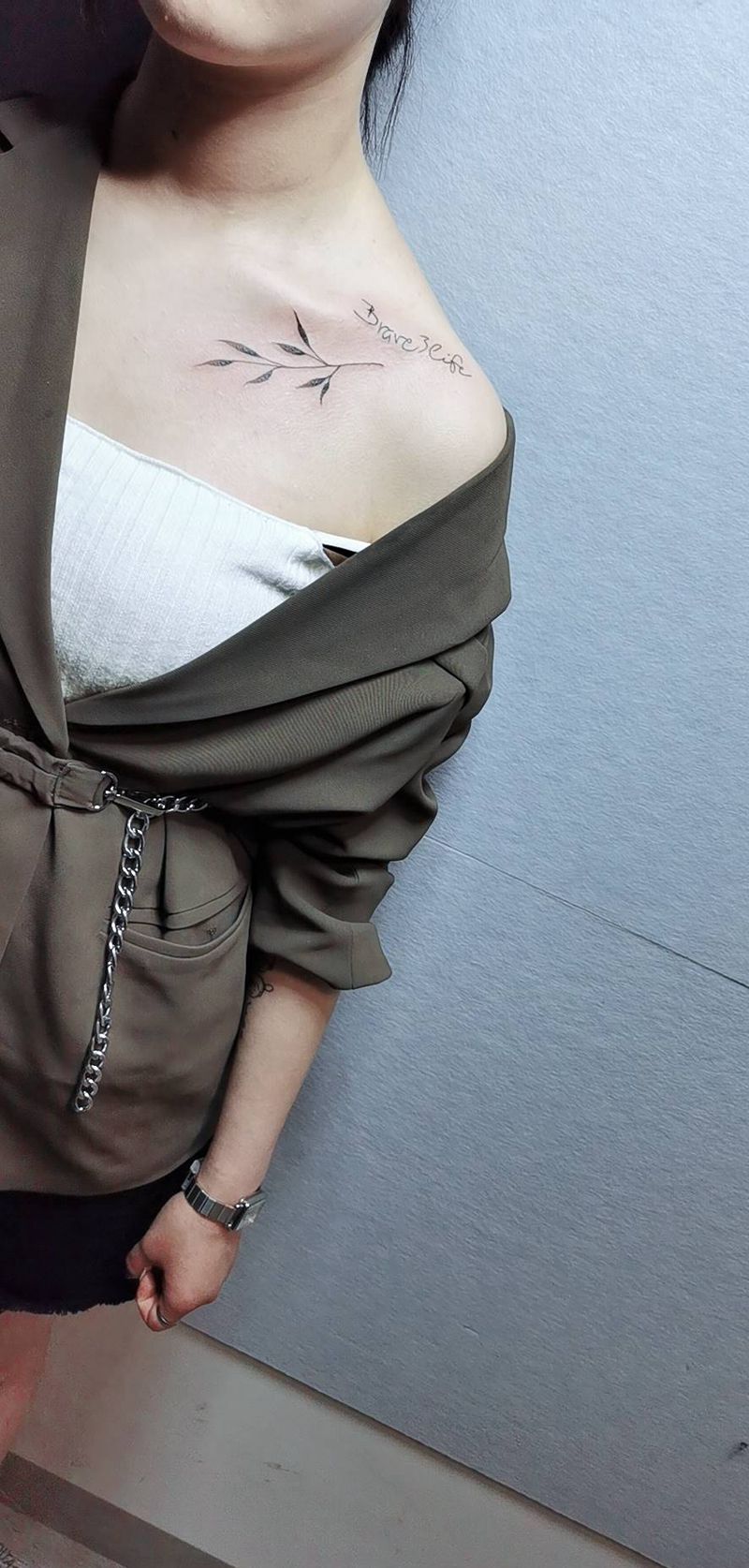 锁骨纹身图片_胸部清新字符成品纹身图案