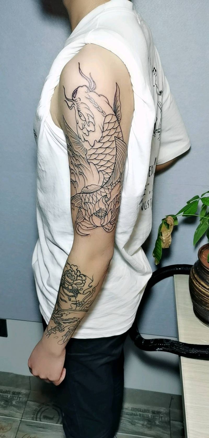 牡丹遮盖牡丹 细节未完纹身图片_手臂纹身图案